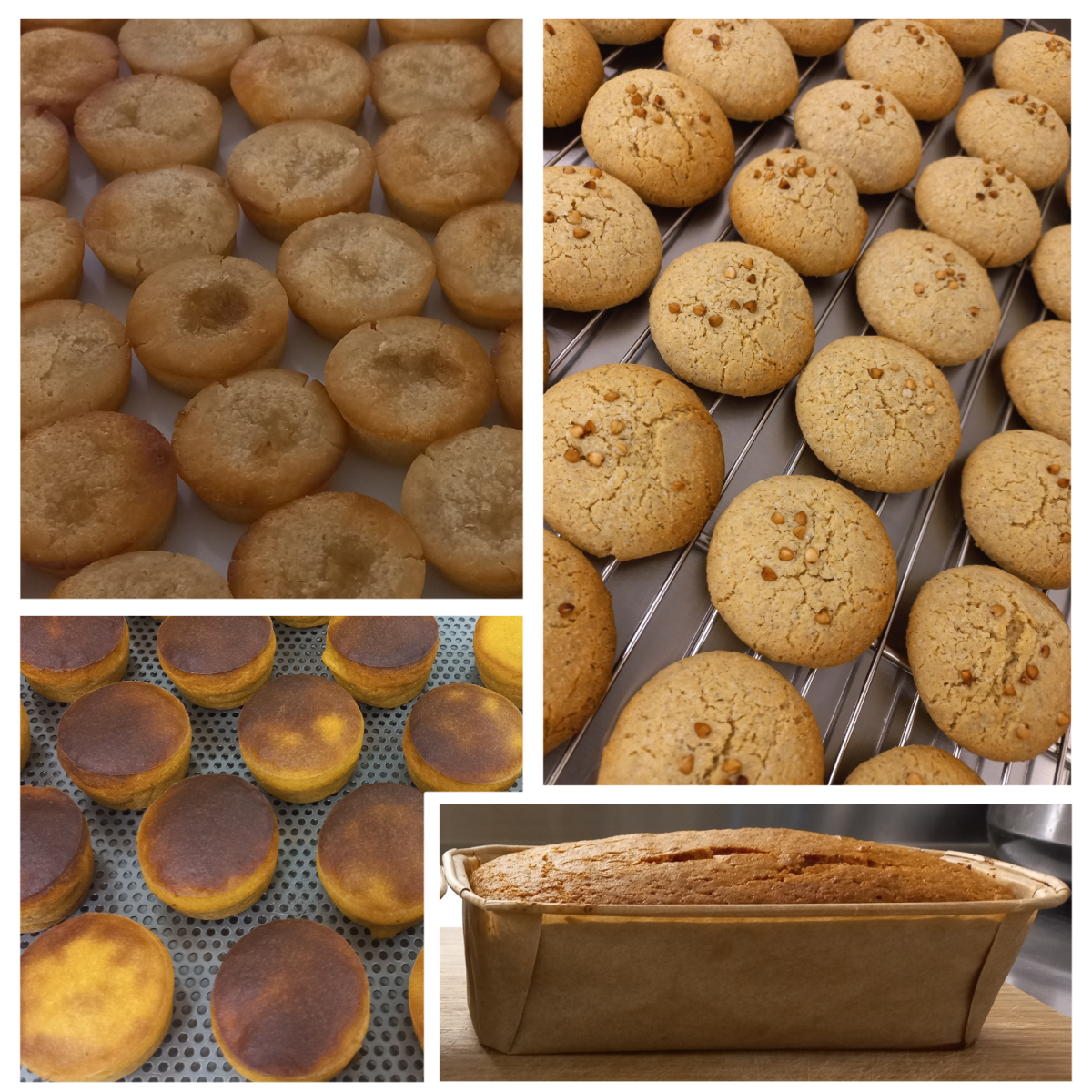 Nos pâtisseries (fondant à la noisette, mini-flan au citron ou au potiron, sablés tout sarrasin ou macarons sarrasin-noisette) sont préparées à base de tofu, d'okara de soja et/ou de farine de sarrasin. Elles sont pour la plupart sans gluten, et pour certaines sans œuf. Le tofu leur confère du moelleux et l'okara de bonnes fibres.